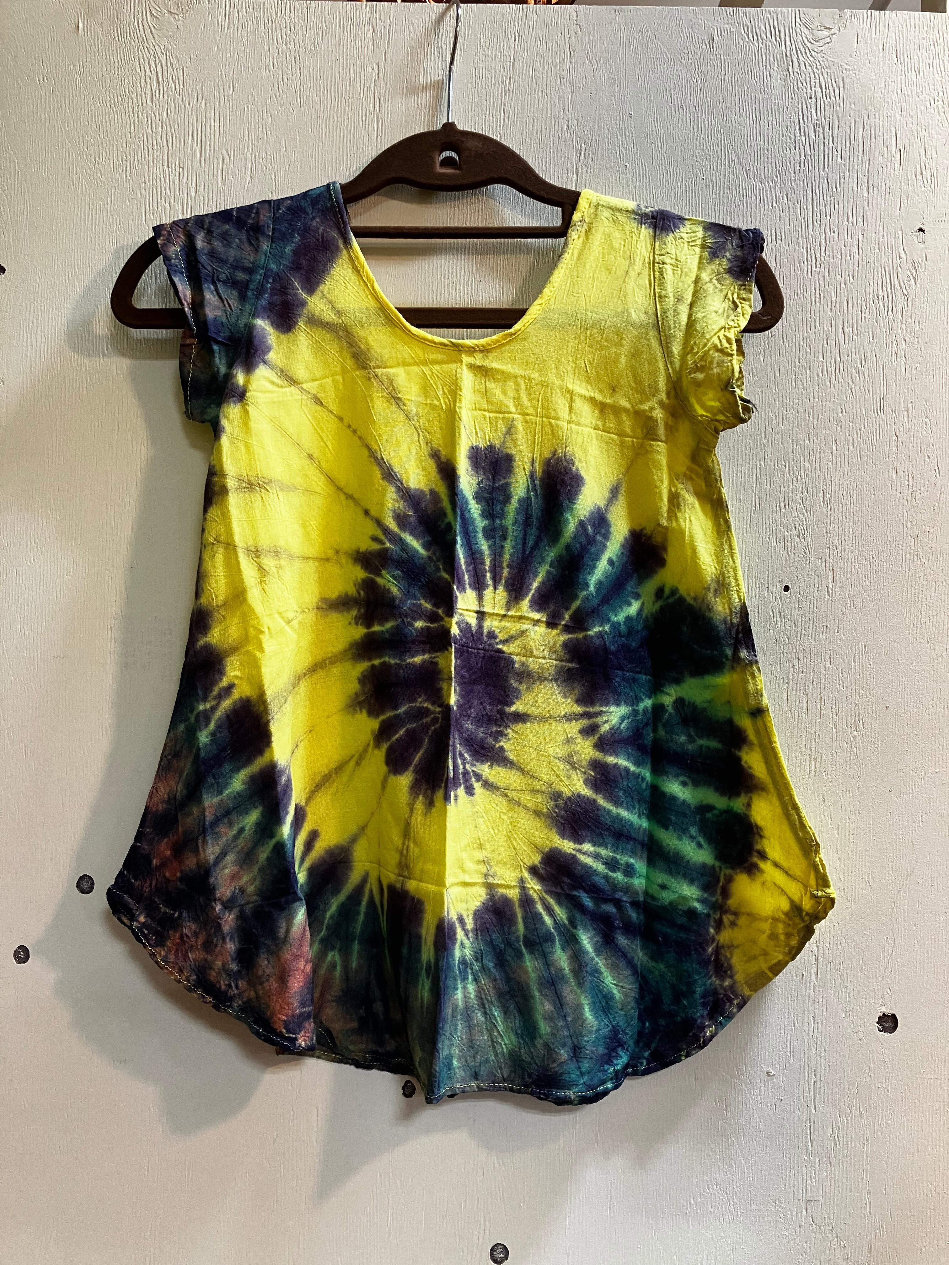 SALE|キッズ用-ワンピース|タイダイ染めキッズワンピ|イエロー|コットン製|サイズ:S/M/L