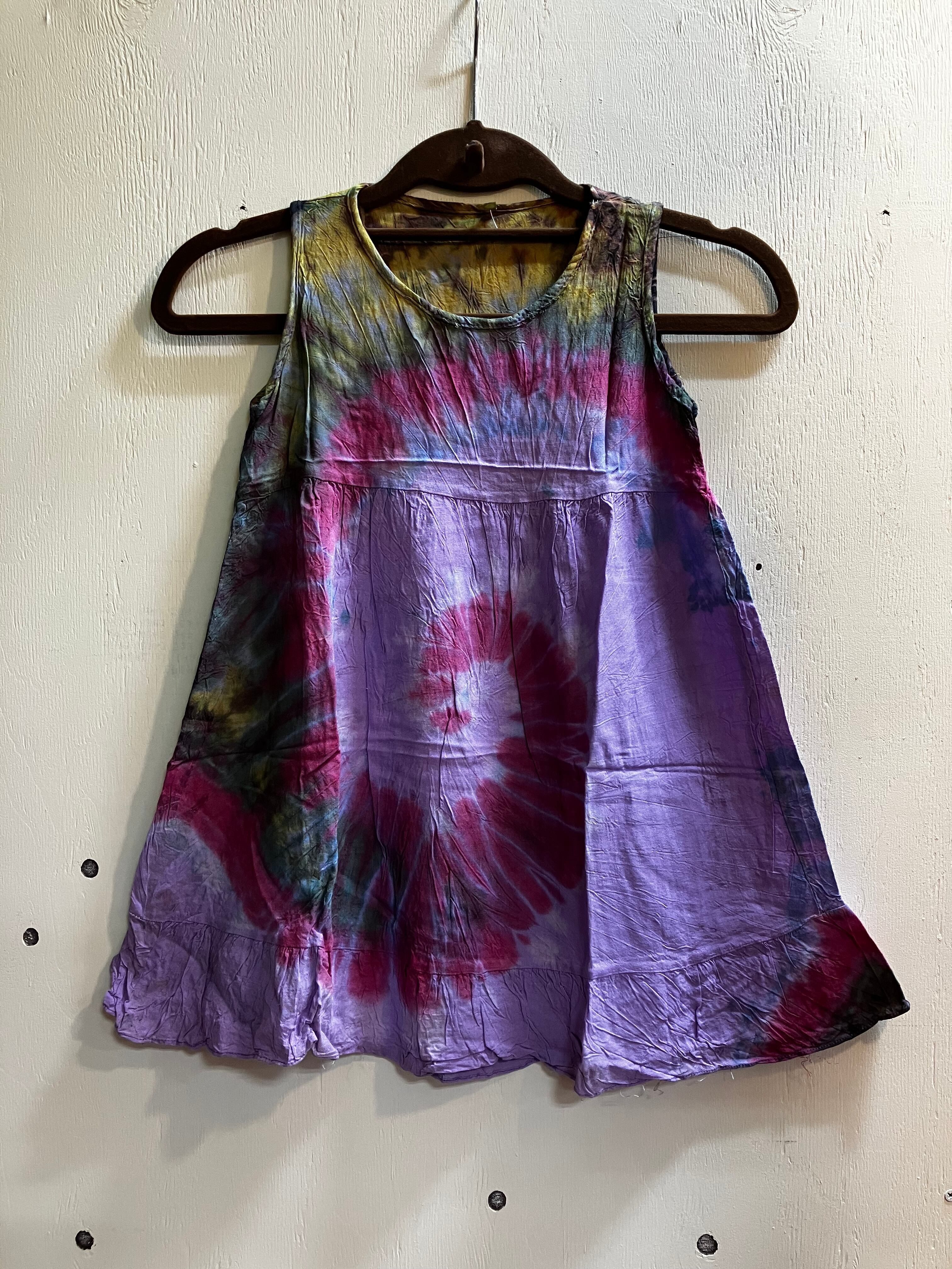 SALE|キッズ用-ワンピース|タイダイ染めキッズワンピ|ラベンダー|コットン製|サイズ:S/M/L