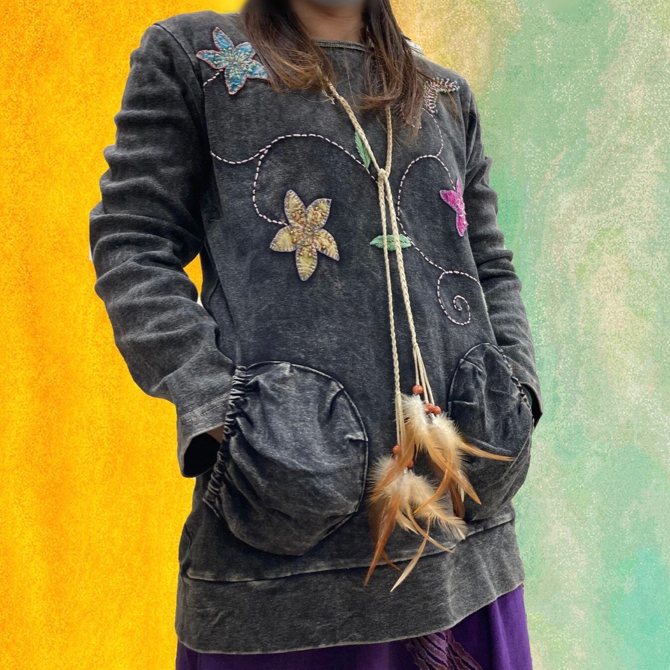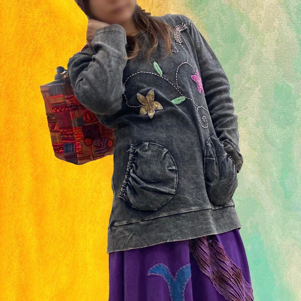 ハンドメイドなので一点毎に異なる表情を見せるパッチワークや刺繍の入った個性的なアイテム。