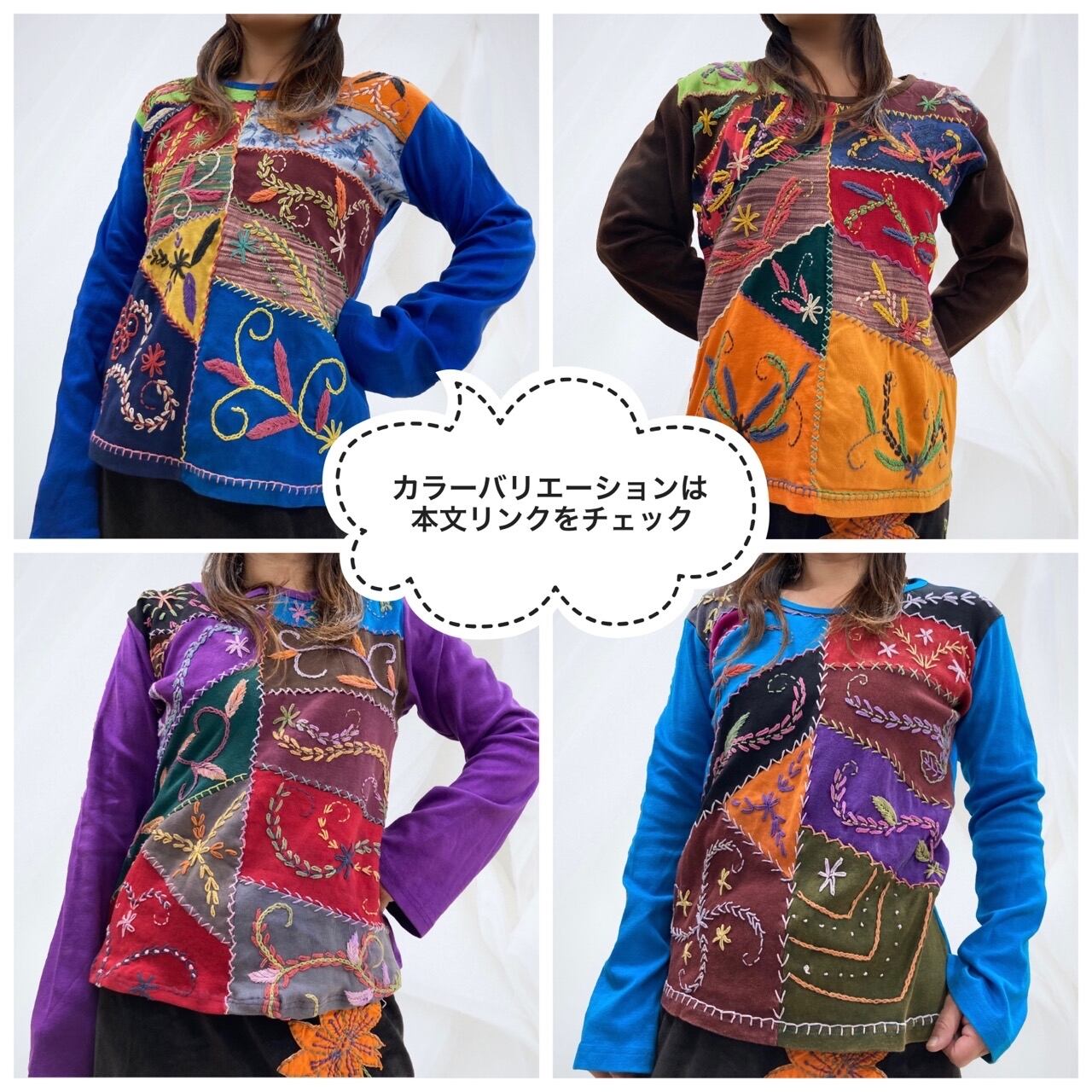 ※一点毎にパッチワークや刺繍の入り方、色具合等若干異なる個性があります。
