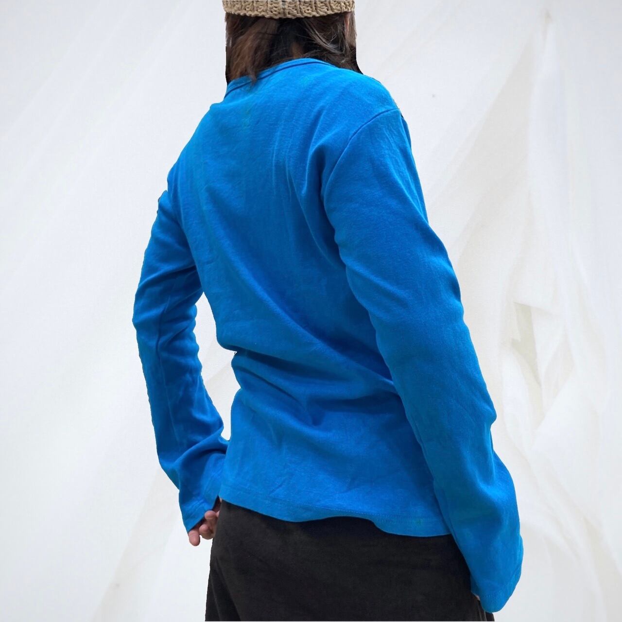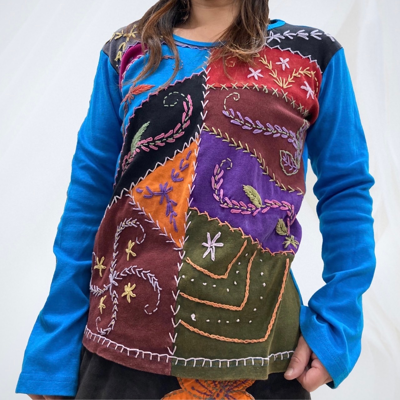 長袖ロンT/ ターコイズ/ネパールパッチワーク